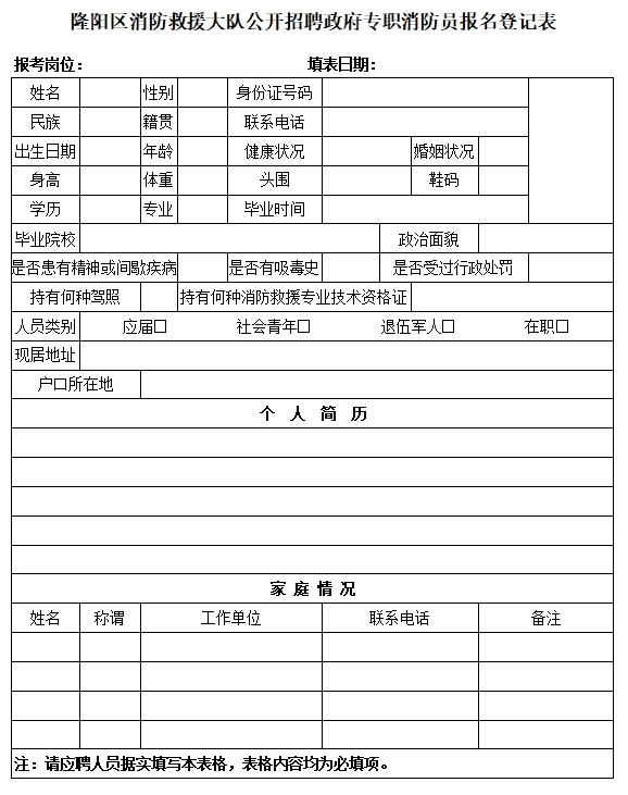附件:隆陽區(qū)消防救援大隊公開招聘政府專職消防員報名登記表