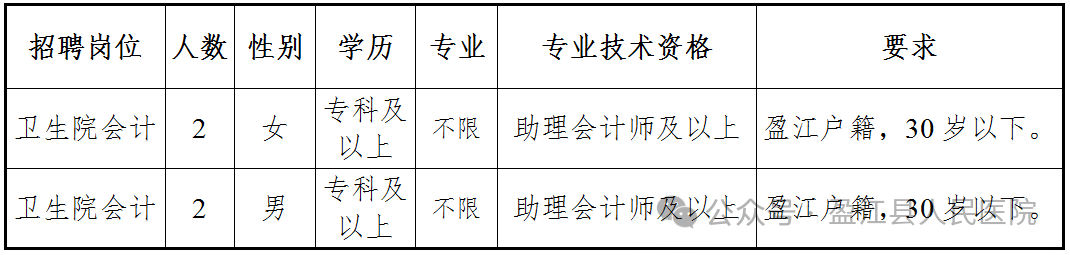 為加強(qiáng)衛(wèi)生院人才隊(duì)伍建設(shè),提升衛(wèi)生院財(cái)務(wù)管理能力,促進(jìn)衛(wèi)生院可持續(xù)發(fā)展,受卡場(chǎng)鎮(zhèn)中心衛(wèi)生院、勐弄鄉(xiāng)中心衛(wèi)生院、舊城鎮(zhèn)中心衛(wèi)生院、支那鄉(xiāng)衛(wèi)生院的委托,由盈江縣緊密型縣域醫(yī)共體總院盈江縣人民醫(yī)院牽頭面向社會(huì)公開(kāi)為上述4家衛(wèi)生院招聘編外財(cái)務(wù)人員各 1名,現(xiàn)公告如下: