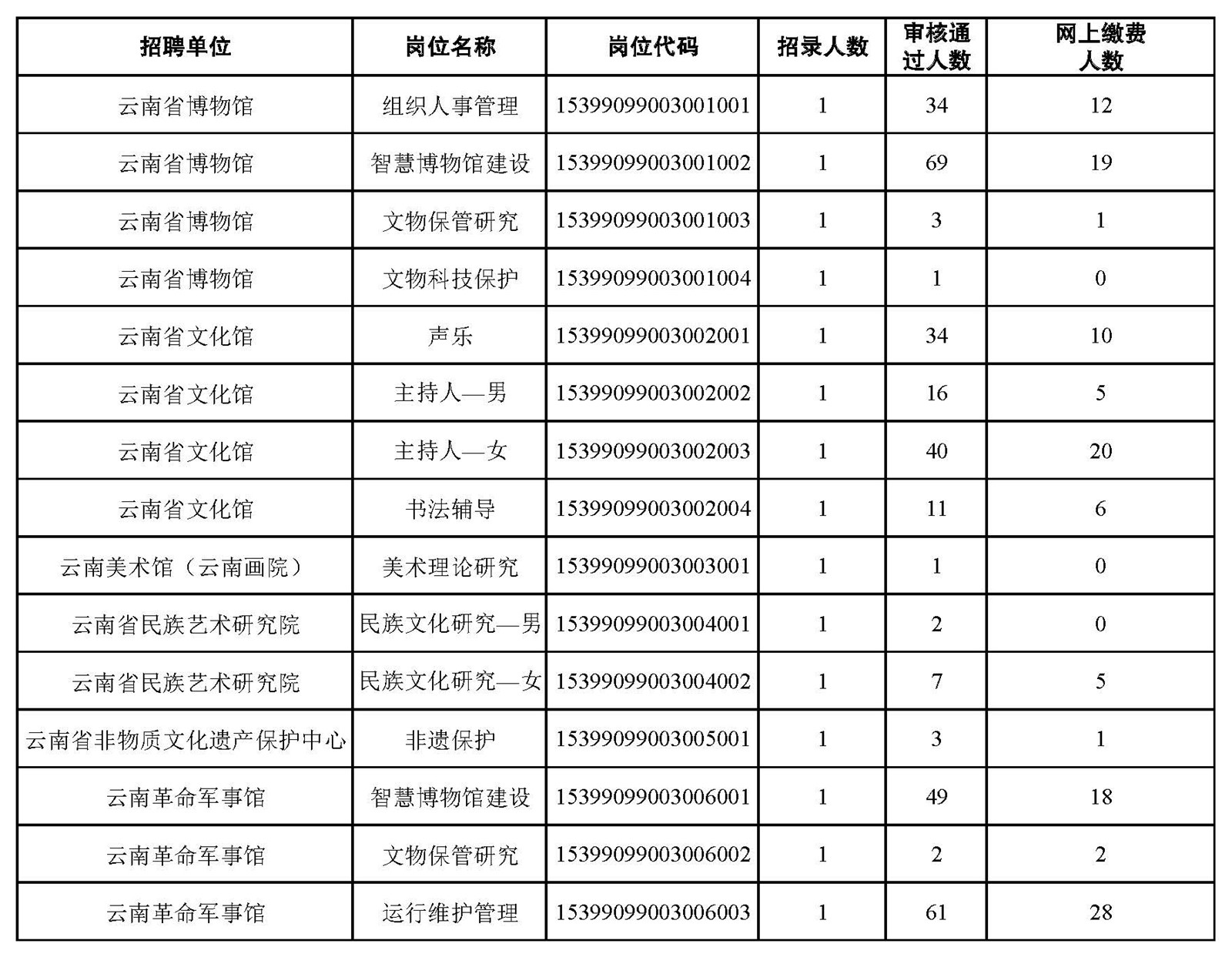 2024年下半年云南省文化和旅游廳直屬事業(yè)單位 公開招聘人員報(bào)名繳費(fèi)情況 (截至2024年9月20日10:30)