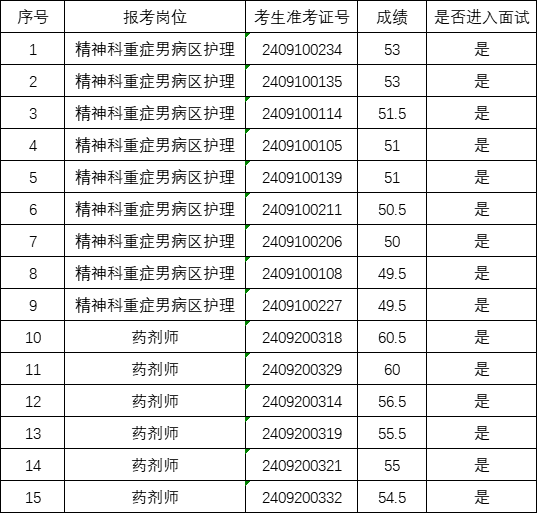 玉溪市第二人民醫(yī)院2024年公開(kāi)招聘編制外工作人員筆試環(huán)節(jié)已結(jié)束,現(xiàn)將筆試成績(jī)及擬進(jìn)入面試人員名單予以公示,完整名單詳見(jiàn)附件。