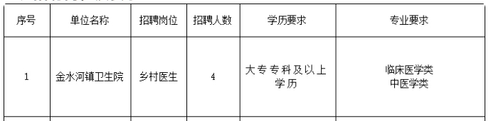 金平縣金水河鎮(zhèn)衛(wèi)生院招聘鄉(xiāng)村醫(yī)生