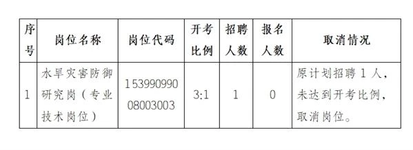 根據(jù)《云南省事業(yè)單位公開招聘工作人員辦法》(云人社發(fā)〔2016〕182號)等有關(guān)文件規(guī)定及《2024年下半年云南省水利廳部分直屬事業(yè)單位公開招聘人員公告》要求,省水利廳按照“每個崗位的繳費人數(shù)與計劃招聘人數(shù)不低于3:1方能開考。未達(dá)到3:1的,根據(jù)繳費人數(shù)予以裁減或取消。招聘緊缺急需專業(yè)崗位,經(jīng)各招聘單位申請,云南省水利廳審核同意報云南省人力資源和社會保障廳批準(zhǔn)后可放寬開考比例。”的原則,結(jié)合此次實際報名情況,現(xiàn)將崗位裁減情況公告如下: