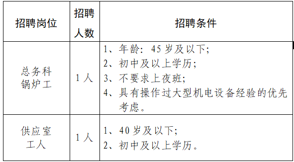 (一)總務(wù)科鍋爐工:定崗定薪3000元/月左右(含個(gè)人社保部分),具體根據(jù)工作量、工作強(qiáng)度、服務(wù)態(tài)度、服務(wù)質(zhì)量、學(xué)習(xí)能力、熟練程度等,視試工考核情況確定;