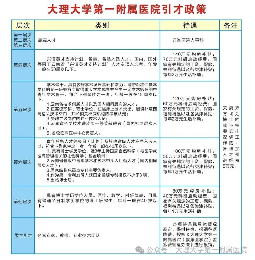 大理大學(xué)第一附屬醫(yī)院2025年校園招聘公告