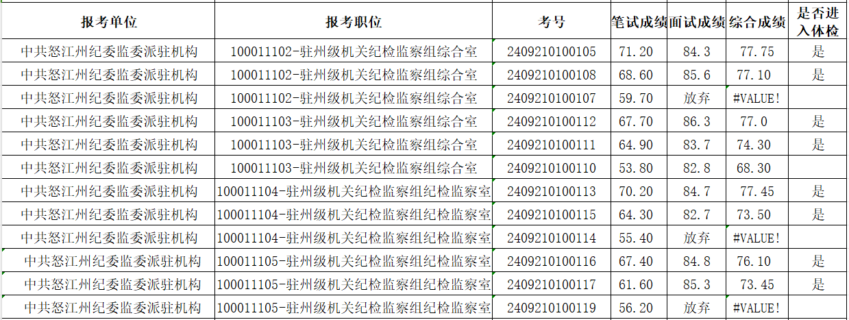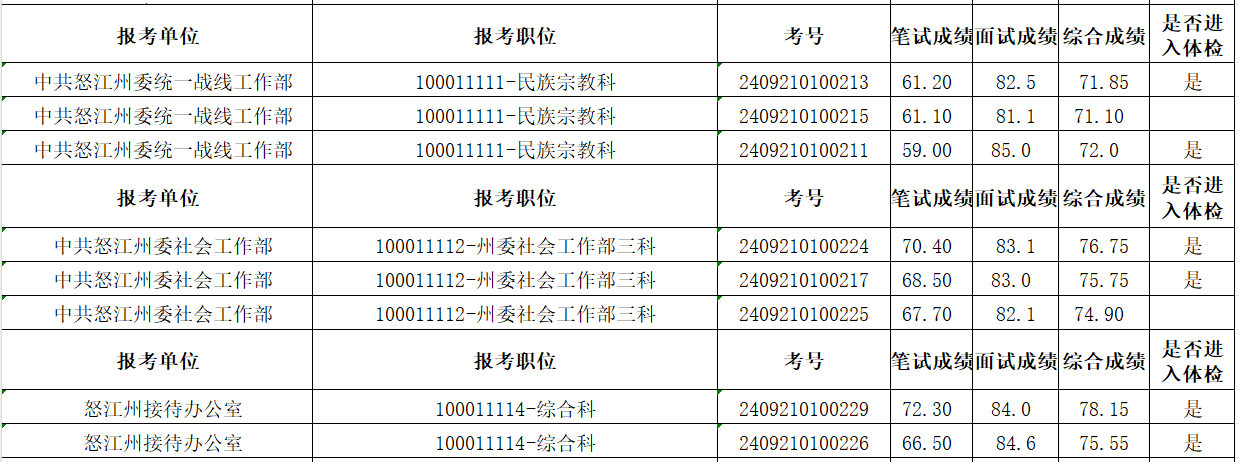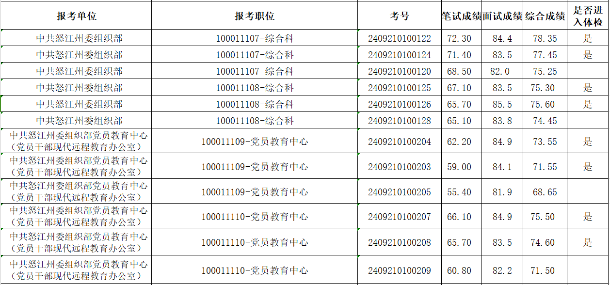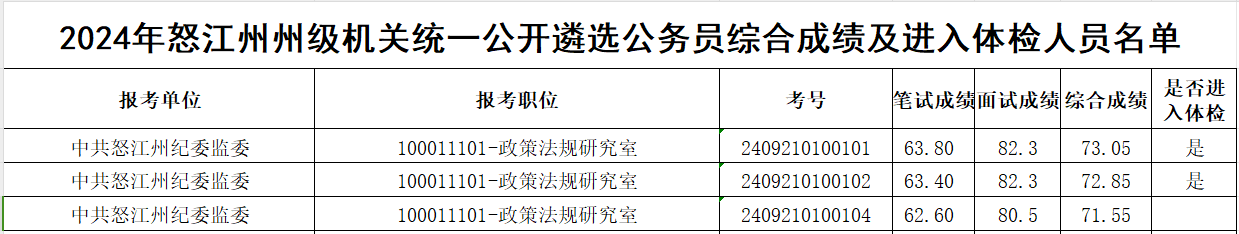 2024年怒江州州級(jí)機(jī)關(guān)統(tǒng)一公開遴選公務(wù)員綜合成績(jī)和進(jìn)入體檢情況公示