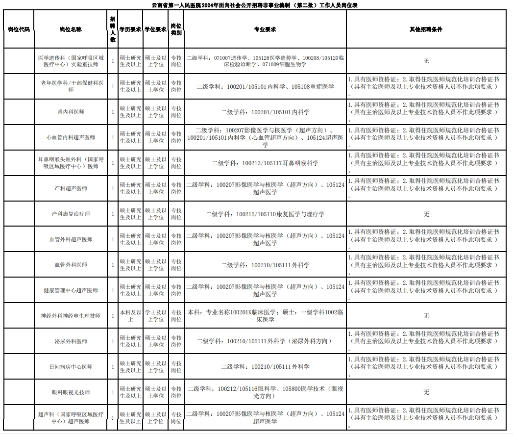 附件1-云南省第一人民醫(yī)院2024年面向社會(huì)公開招聘非事業(yè)編制(第二批工作人員崗位表.pdf