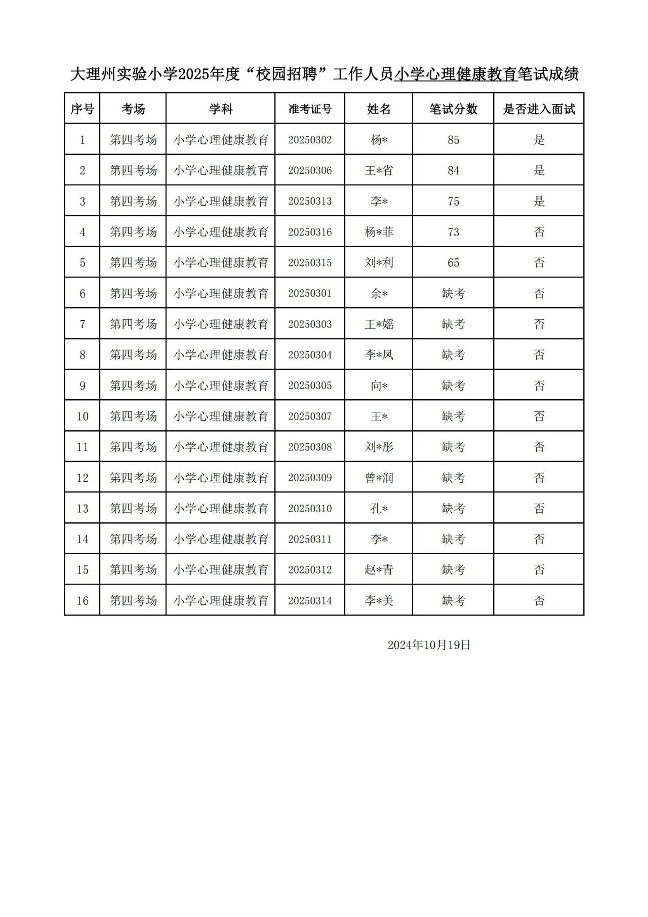 大理州實驗小學2025年度“校園招聘”工作人員筆試成績公布