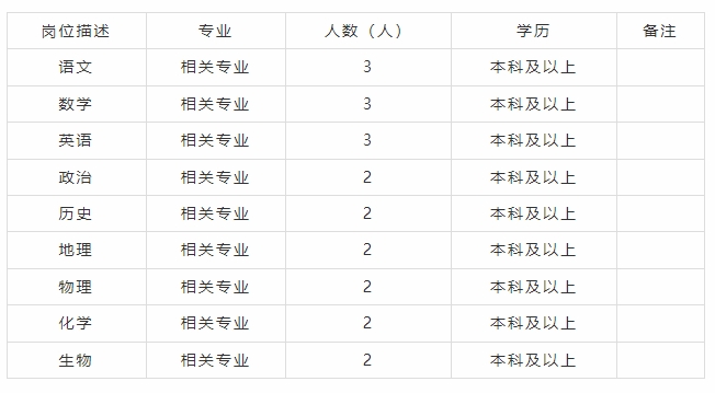 根據(jù)學(xué)校發(fā)展的需要,現(xiàn)面向全國(guó)招聘高中各學(xué)科具有教學(xué)經(jīng)驗(yàn)的優(yōu)秀教師(具體招聘計(jì)劃見附表)。
