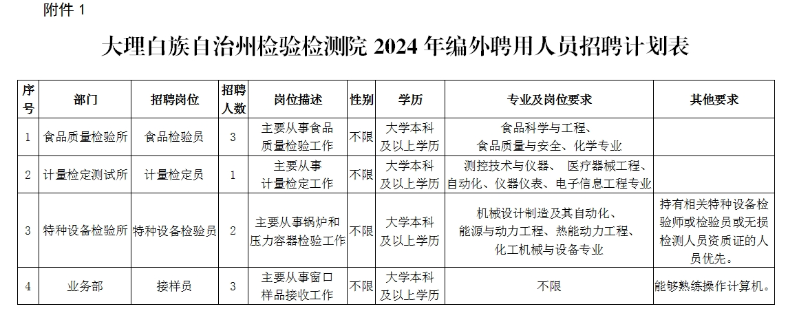 大理白族自治州檢驗(yàn)檢測(cè)院2024年公開(kāi)招聘編外聘用人員的公告