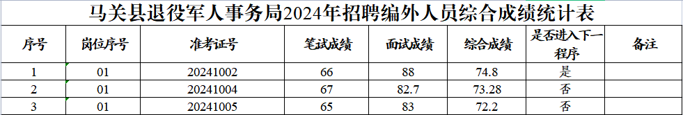 附件:馬關(guān)縣退役軍人事務(wù)局2024年招聘編外人員筆試成績統(tǒng)計表