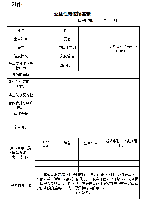附件:公益性崗位報(bào)名表