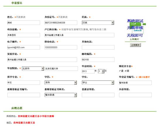 (4)【教師資格證書(shū)編號(hào)】、【教師資格證書(shū)種類(lèi)】和【外語(yǔ)等級(jí)】按照《滇中產(chǎn)業(yè)聚集區(qū)(新區(qū))社會(huì)事務(wù)管理局關(guān)于做好2015年中央特崗計(jì)劃招聘考試有關(guān)工作的公告》中的崗位條件填寫(xiě)。