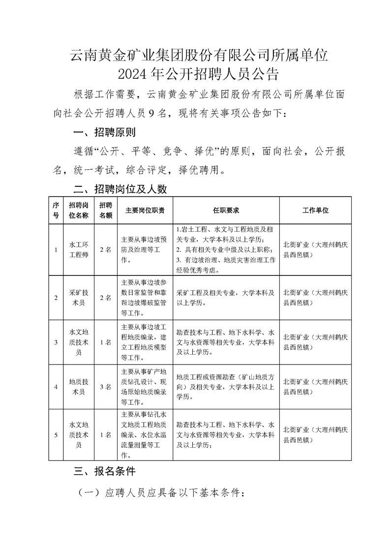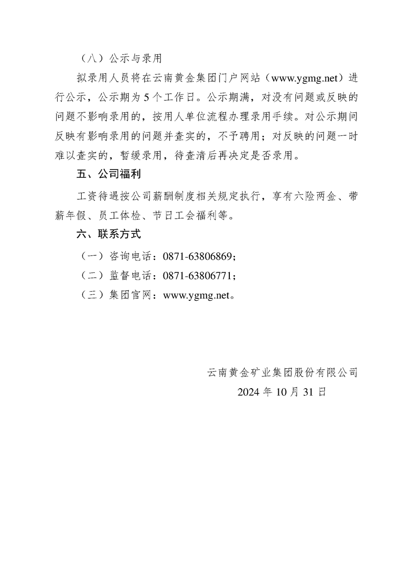 2024年11月云南黃金礦業(yè)集團(tuán)股份有限公司所屬單位招聘公告