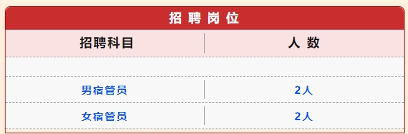 3.服從學(xué)校的規(guī)章制度,能配合學(xué)校做好相應(yīng)的后勤工作,有管理學(xué)生經(jīng)驗(yàn)或宿管經(jīng)驗(yàn)者優(yōu)先考慮。