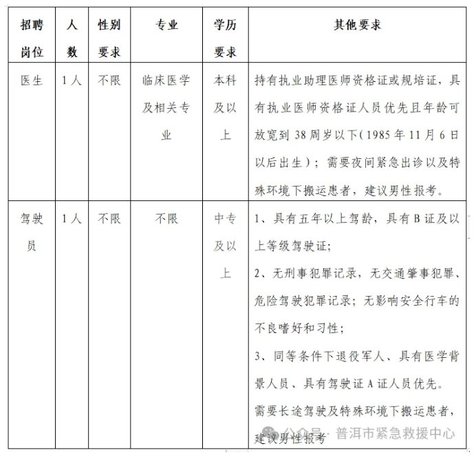 筆試及面試地點(diǎn):普洱市緊急救援中心1號(hào)樓4樓會(huì)議室。