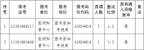 昆明市科學(xué)技術(shù)協(xié)會(huì)所屬事業(yè)單位2024年公開選調(diào)工作人員進(jìn)入資格復(fù)審人員名單如下: