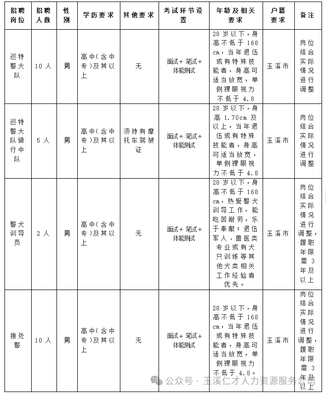 10.在玉溪市公安局紅塔分局工作過的輔警人員離職不滿一年的不得報名參加此次招聘。