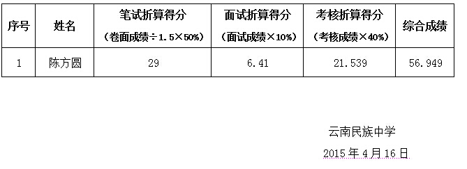 云南民族中學(xué)2015年編外語(yǔ)文教師招聘綜合成績(jī)公示
