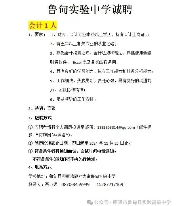 2024年昭通市魯?shù)榭h實驗高級中學(xué)招聘公告