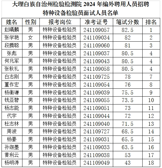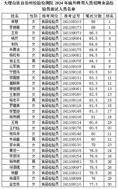 大理州檢驗(yàn)檢測院2024年公開招聘編外聘用人員面試公告