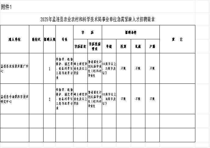 附件:1.2025年孟連縣農(nóng)業(yè)農(nóng)村和科學(xué)技術(shù)局事業(yè)單位急需緊缺人才招聘簡(jiǎn)章