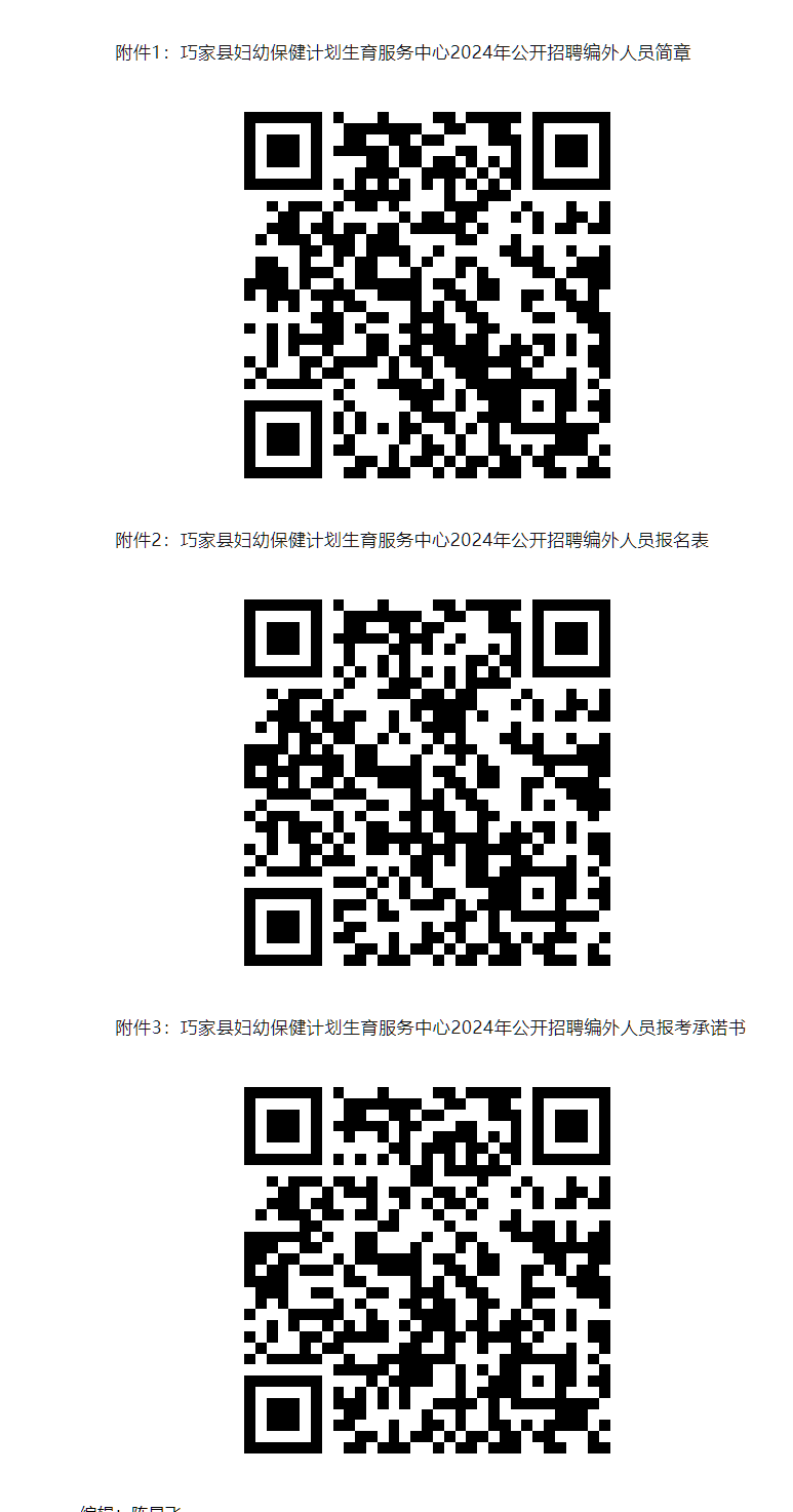 (1)《巧家縣婦幼保健計劃生育服務中心2024年公開招聘編外人員報名表》(附件2)。