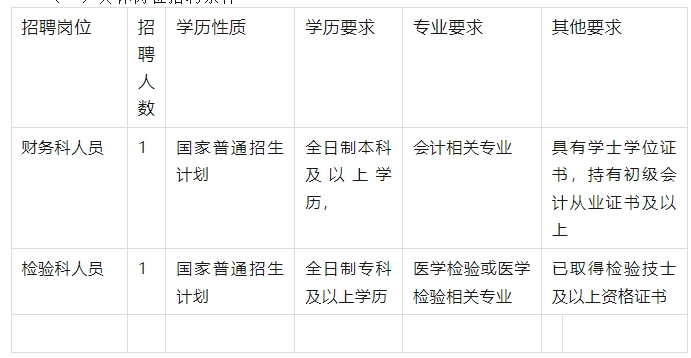 (一)具體崗位招聘條件