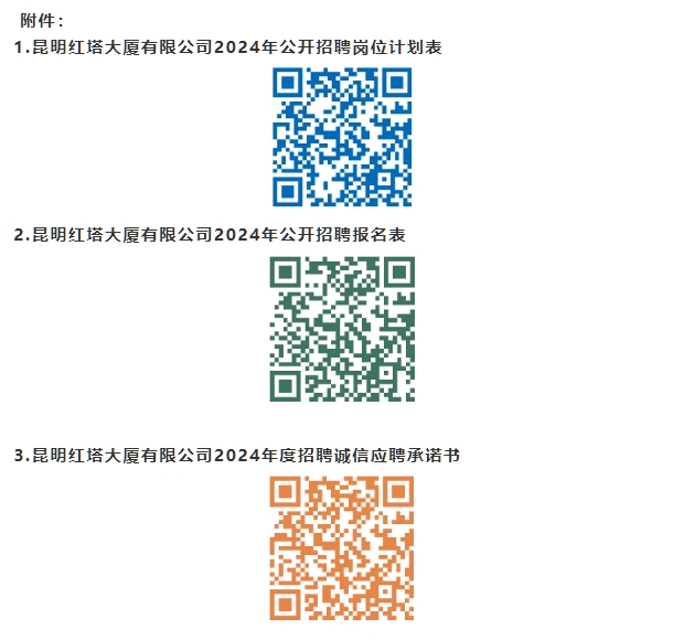紅塔大廈2024年共計(jì)招聘4人,招聘的崗位、數(shù)量、專業(yè)、學(xué)歷等要求詳見《昆明紅塔大廈有限公司2024年公開招聘崗位計(jì)劃表》(附件1)。