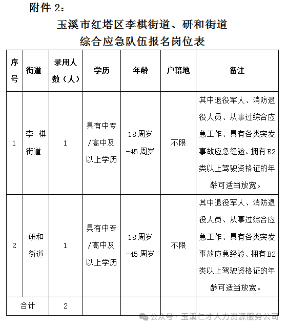 附件2:玉溪市紅塔區(qū)李棋街道、研和街道綜合應(yīng)急隊伍報名崗位表