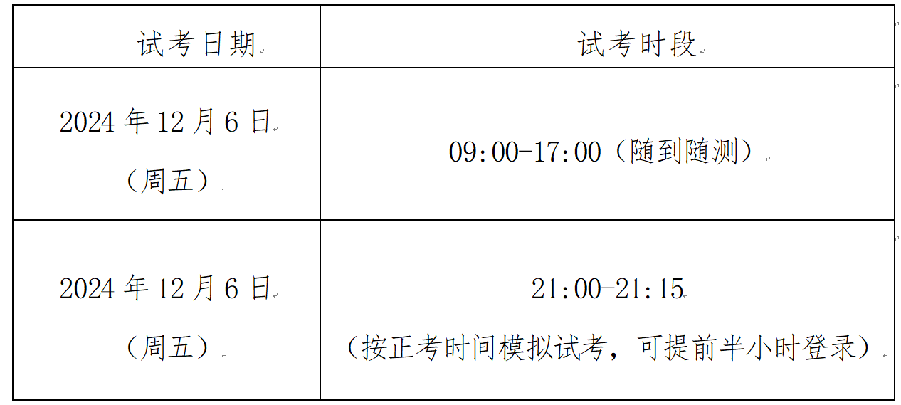 試考不做登錄限制,考生可在指定時間段內(nèi)登錄考試系統(tǒng),調(diào)試考試相關(guān)系統(tǒng)和設(shè)備,以熟悉正式考試要求和考試流程。