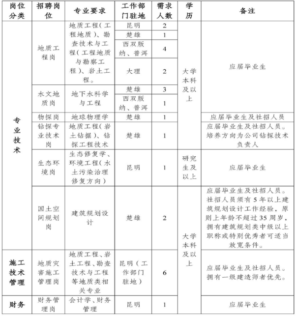 備注:經(jīng)云南地質(zhì)工程第二勘察院有限公司組織人事部同意昆明市公共就業(yè)和人才中心發(fā)布本信息。