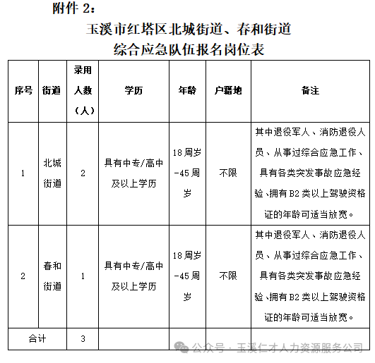 附件2:玉溪市紅塔區(qū)北城街道、春和街道綜合應(yīng)急隊(duì)伍報(bào)名崗位表