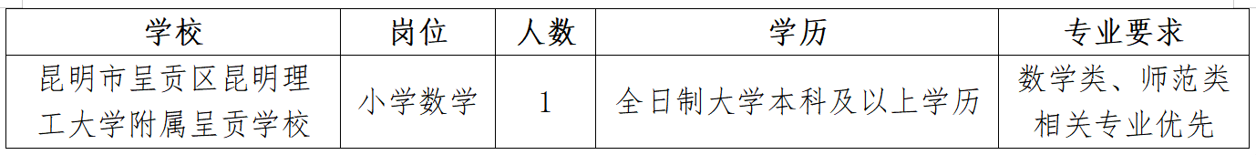 本次招聘工作由昆明市呈貢區(qū)昆明理工大學(xué)附屬呈貢學(xué)校組織,該崗位不設(shè)開考比例,不收取報名及考試費用。