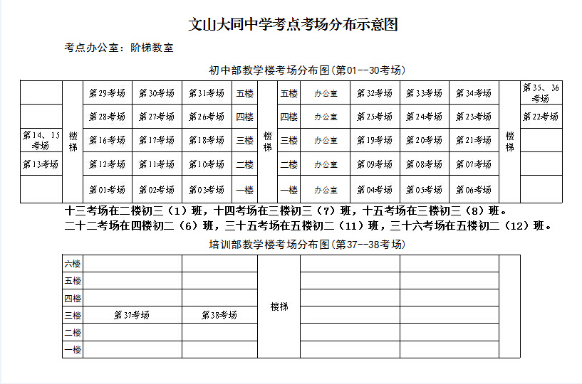 文山大同中學(xué)2015年公務(wù)員考點考場分布示意圖
