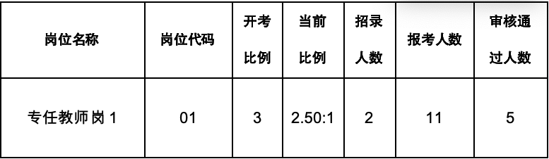 一、審核通過(guò)人數(shù)與招聘人數(shù)比例達(dá)不到3:1,經(jīng)研究,屬于招聘碩士研究生緊缺專(zhuān)業(yè)崗位,放寬開(kāi)考比例開(kāi)考的崗位1個(gè)