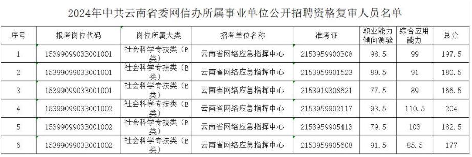 根據《2024年中共云南省委網信辦所屬事業(yè)單位公開招聘人員公告》要求,現將資格復審事項公告如下: