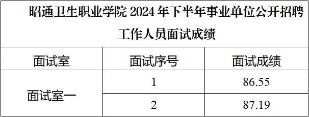 昭通衛(wèi)生職業(yè)學院2024年下半年事業(yè)單位公開招聘工作人員面試成績
