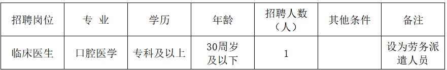 2.招聘的口腔臨床醫(yī)生實(shí)行勞動(dòng)合同制管理,由聘用人員與勞務(wù)派遣公司簽訂勞動(dòng)合同并建立勞動(dòng)關(guān)系。