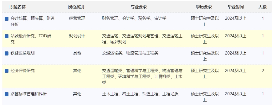 本次計(jì)劃招聘6人,具體崗位及要求詳見(jiàn)《中國(guó)鐵路經(jīng)濟(jì)規(guī)劃研究院有限公司2025年普通高校畢業(yè)生招聘計(jì)劃》。