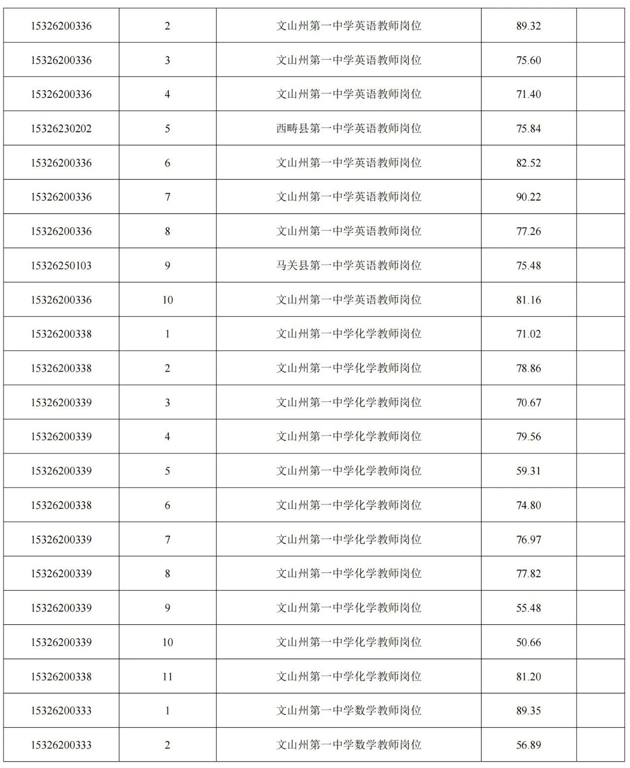 2025年文山州教育體育系統(tǒng)緊缺教師招聘成績(jī)公布