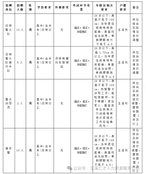 10.在玉溪市公安局紅塔分局工作過(guò)的輔警人員離職不滿一年的不得報(bào)名參加此次招聘。