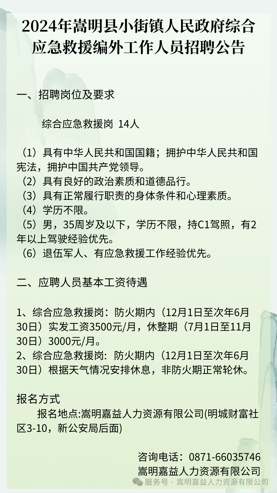2024年昆明市嵩明縣小街鎮(zhèn)人民政府綜合應(yīng)急救援編外工作人員招聘公告