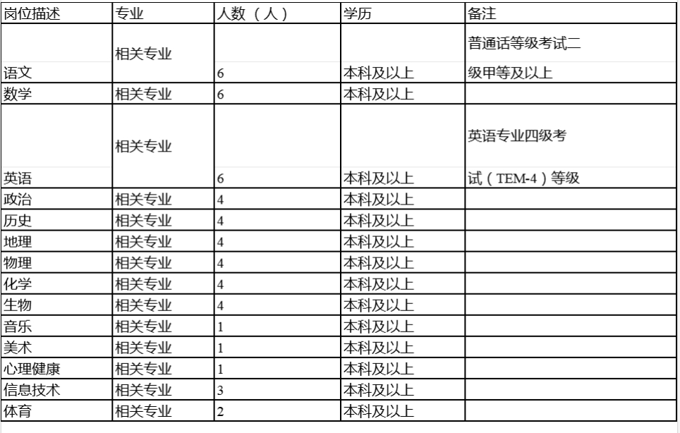 3.具有應(yīng)聘高中崗位所需的學(xué)歷、專業(yè)和高級中學(xué)教師資格證,普通話等級二級乙等及以上。