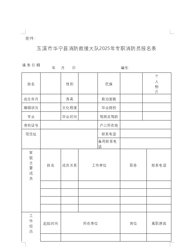玉溪市華寧縣消防救援大隊(duì)2025年專職消防員報(bào)名表.docx