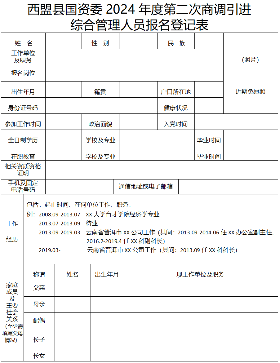 2.西盟縣國資委2024年度第二次商調(diào)引進(jìn)綜合管理人員報(bào)名登記表