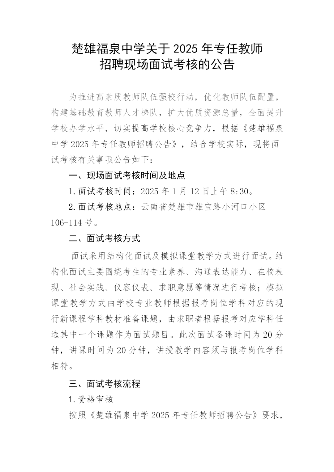 楚雄福泉中學(xué)關(guān)于2025年專任教師招聘現(xiàn)場(chǎng)面試考核的公告
