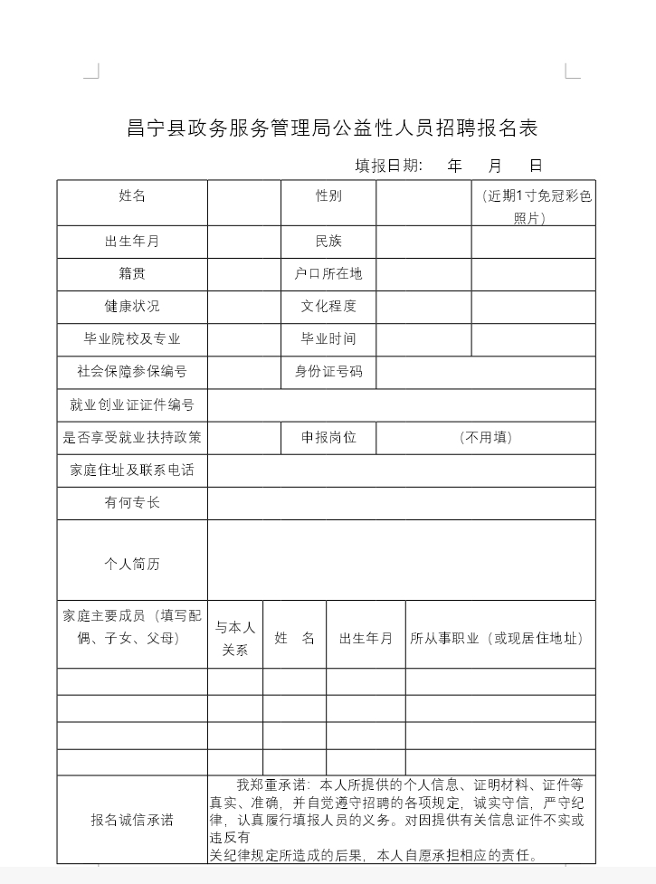 附件:昌寧縣政務(wù)服務(wù)管理局公益性人員招聘報(bào)名表
