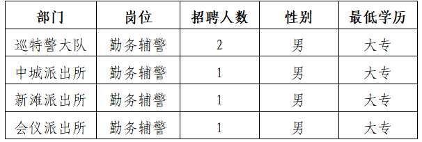 因工作需要,綏江縣公安局面向社會公開招聘警務(wù)輔助人員,現(xiàn)將有關(guān)事項公告如下: