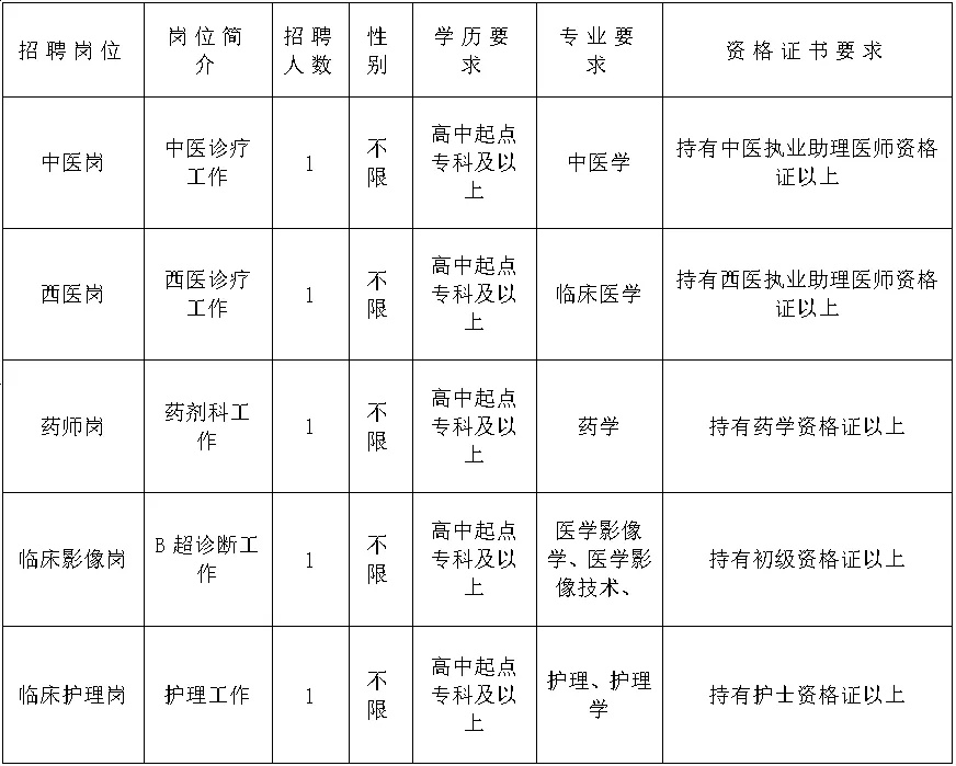 崗位簡介及具體招聘條件詳見《彌渡縣彌城鎮(zhèn)社區(qū)衛(wèi)生服務(wù)中心公開招聘編外臨床崗位人員情況表》