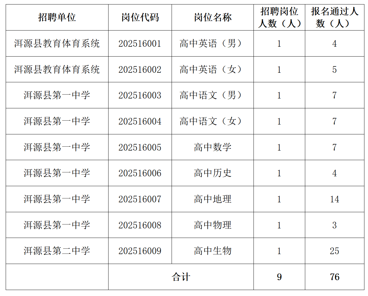 洱源縣2025年度公開考核招聘報考人數(shù)情況公布